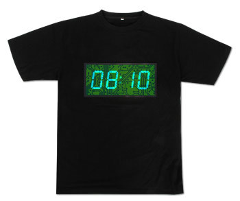 Ya basta de que te paren en la calle para pedirte la hora. Ahora puedes brindar un servicio y evitar que te interrumpan. Sólo hará falta que te miren y todos sabrán el horario gracias a tu camiseta que en el pecho lleva un reloj que es un panel digital iluminado.