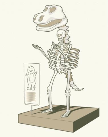 De este modo imaginó cómo sería el ámbito en el que se expusieran los restos fósiles de Barney y el dibujo que aparece en el frente de la prenda es lo que pensó... ¡Y vaya si es original!