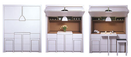 Una solución ejemplar en ahorro de espacio, optimización de recursos y diseño lúdico: la cocina compacta Grandma's Revenge (la venganza de la abuela), un concepto de las alemanas Melanie Olle y Ilja Oelschlägel.