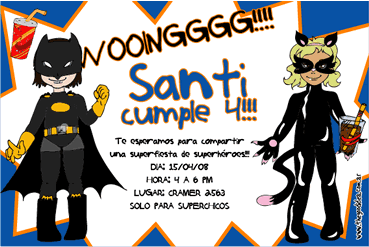 Podéis elegir entre varios personajes para que protagonicen las invitaciones, en el caso de los superhéroes podríamos seleccionar a un Power Ranger, a Spiderman o a Wonder Woman entre otros.