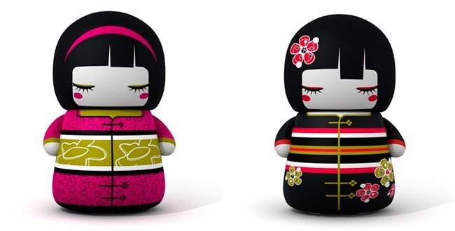 Cada modelo es diferente, pero todas llevan una cabecita desmontable que esconde el conector USB, cada una con un peinado diferente y complementos a juego con sus respectivos kimonos. Están disponibles en una única capacidad de memoria, 2 GB, lo cual quizá sea poco para los días que corren.