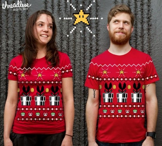 Hay veces en las que encontrar un regalo geek puede llegar a ser extremadamente difícil. ¿Difícil? Me atrevería a decir que imposible. Pues fijaos lo que me acabo de encontrar, porque apunta a ser un candidato a regalo para dentro de unas semanas: la camiseta 8Bit Christmas protagonizada, aunque no lo parezca, por motivos relativos al juego Super Mario.