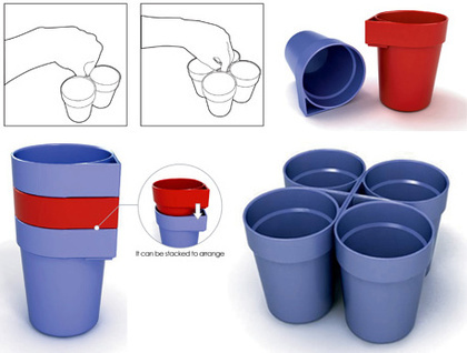 Jung-Woo Balk sí y quiere explicarnos cómo lo hace. Su secreto son las tazas Pick-cup que el mismo ha diseñado. Estas se agrupan de cuatro en cuatro dejando en la parte central unos orificios para que podamos introducir nuestros dedos y transportar de este modo cuatro en cada mano. Sin problemas y sin quemarnos.