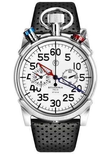 La correa de piel perforada (intercambiable) es del mismo cuero utilizado en los coches deportivos de lujo. Berma Time distribuye en España los relojes de la firma CT Scuderia.