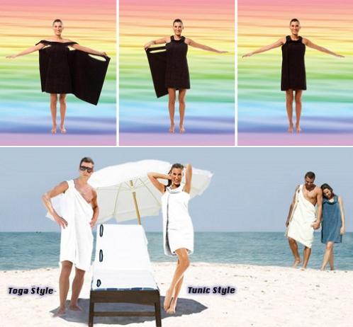 Muchas veces al salir de la ducha, del mar o de la piscina, decidimos colocar la toalla alrededor de nuestro cuerpo para cubrirnos, caminar y realizar actividades con ella. Claro que eso implica la incomodidad de que la toalla se caiga y haya que sostenerla permanentemente. Pues entonces, para evitarlo, la Wearable Towel es ideal para envolverse en una toalla y llevarla muy cómodamente.